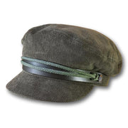 A casual feminine take on a classic style. This fishermen's cap features a structured brim and soft squared crown with a double rope fastened to a faux leather band and side button details. Lined with cotton and finished with a cotton inner band for a comfortable fit.