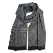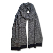 A soft scarf for everyday wear. This piece has an allover geometric print and is finished with fringe. Wear this scarf with your favourite Winter jacket to keep warm.