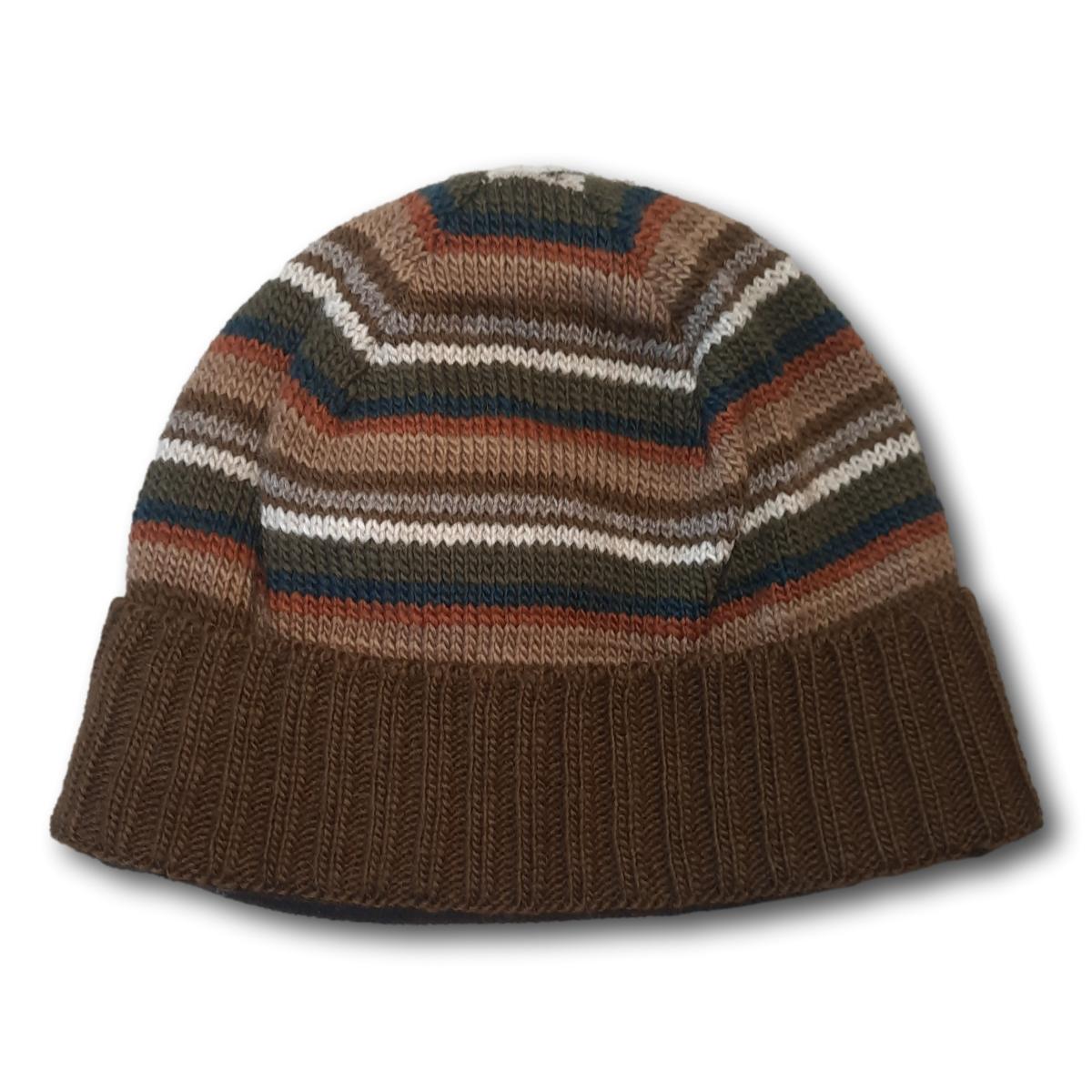 Made of wool with a super soft fleece lining, this beanie features a multi-stripe knit.