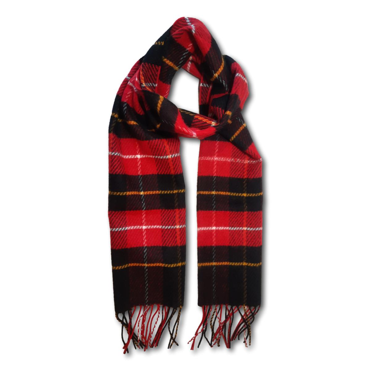 A classic scarf for everyday wear. This piece has an allover plaid print and is finished with fringe. Wear this scarf with your favourite Winter jacket to keep warm.