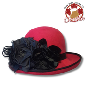 Add a pop of colour to your wardrobe with this piece! Designed by Sova Design in Saskatoon, SK. This piece features an upturned brim and a round crown. Finished with flowers for extra drama.
