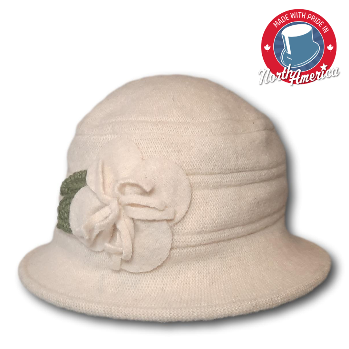 A classic style for everyday wear. This piece has a medium brim and a round crown. Finished with a pleated band and an accent flower.