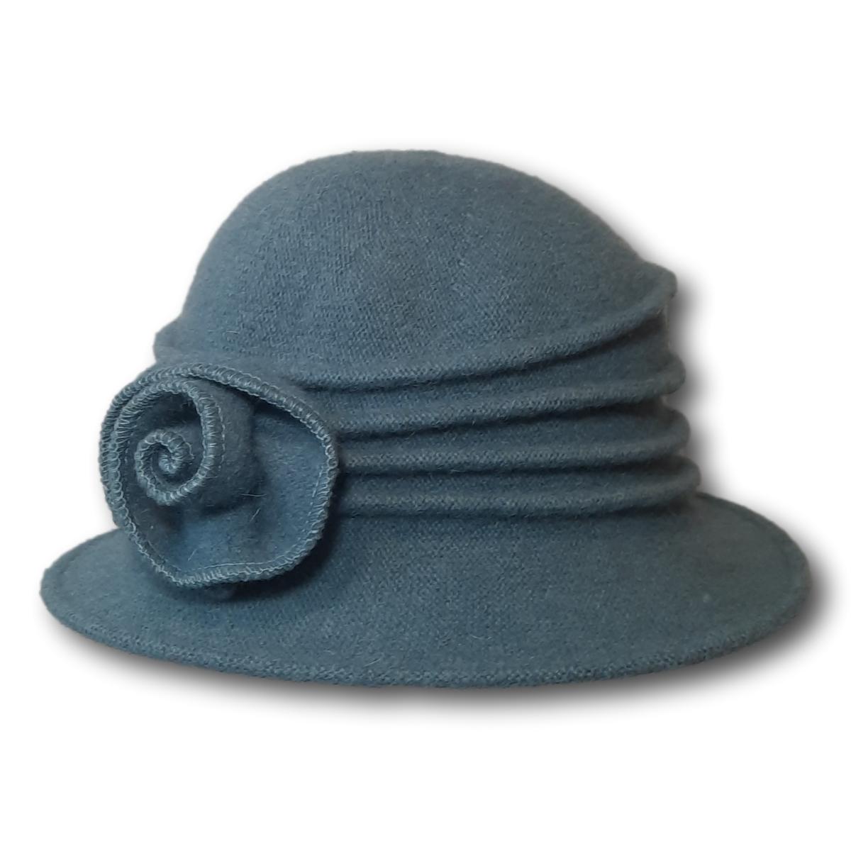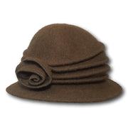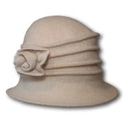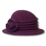 A classic style for everyday wear. This piece has a medium brim and a round crown. Finished with a pleated band and an accent flower.