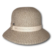 A classic style for warmer days. Featuring a round crown and a downturned brim. Finished with a simple braided band for detail.