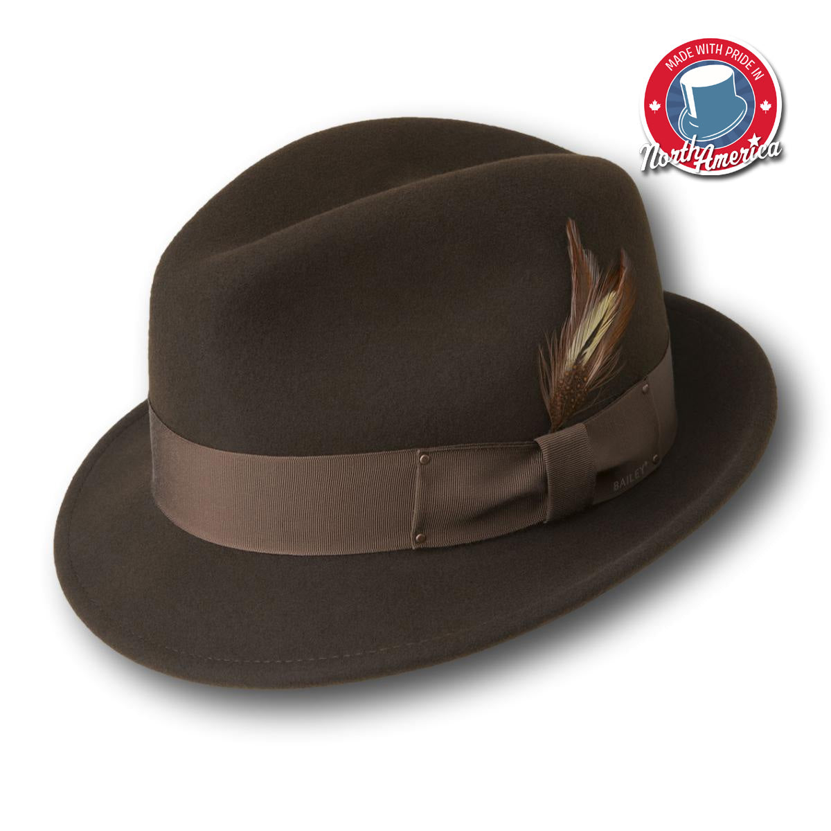The perfect go-to for any occasion! Made of wool felt, this classic fedora features a dented crown and shapeable brim. Finished with a grosgrain band and Bailey printed on the bow.
