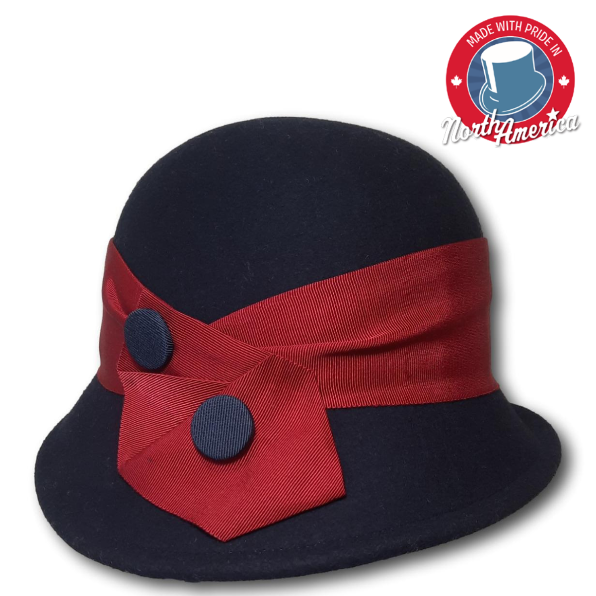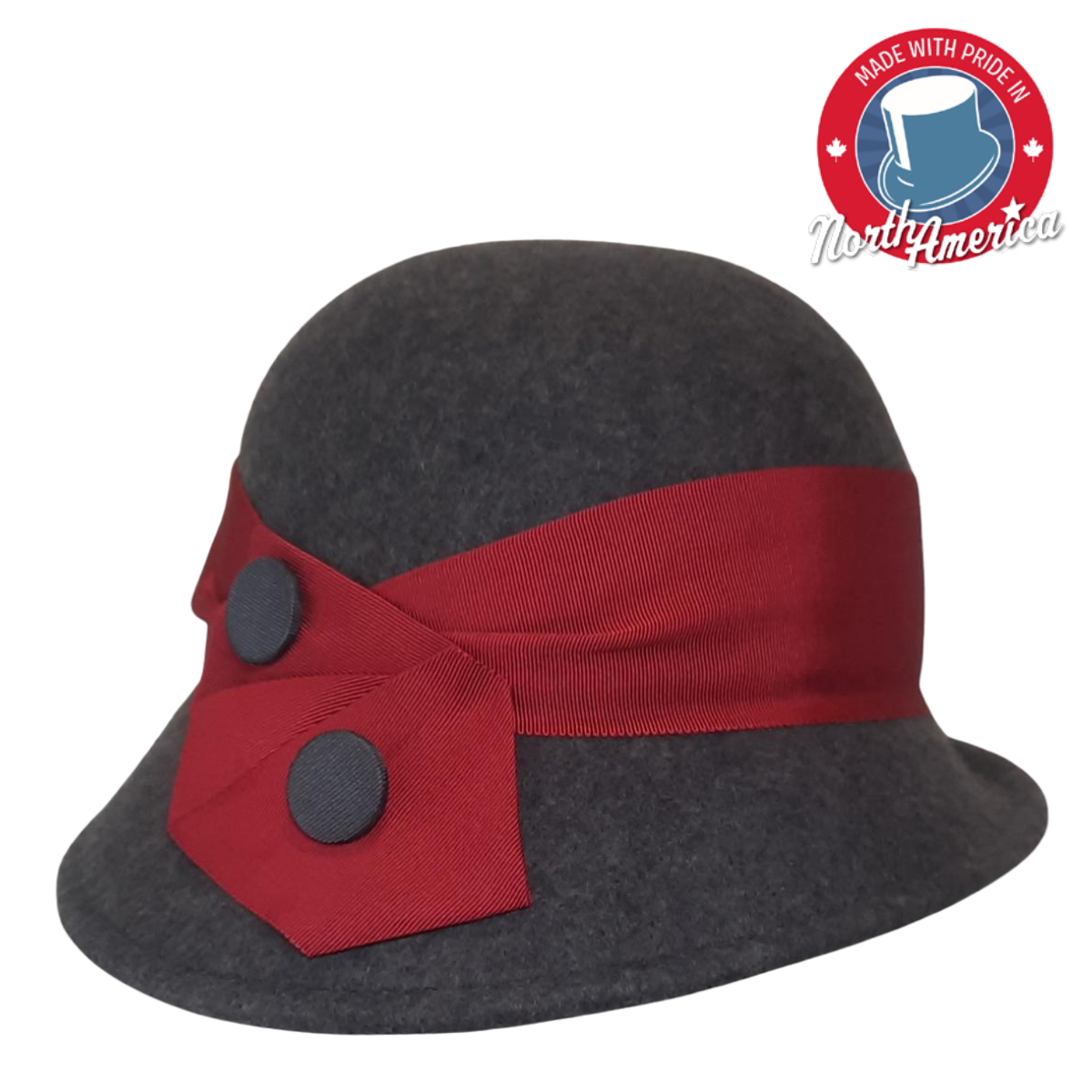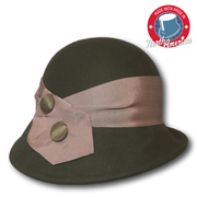 Embrace the 1920's in modern days. Featuring a round crown and a profile brim. Finished with a thick grosgrain band and buttons.